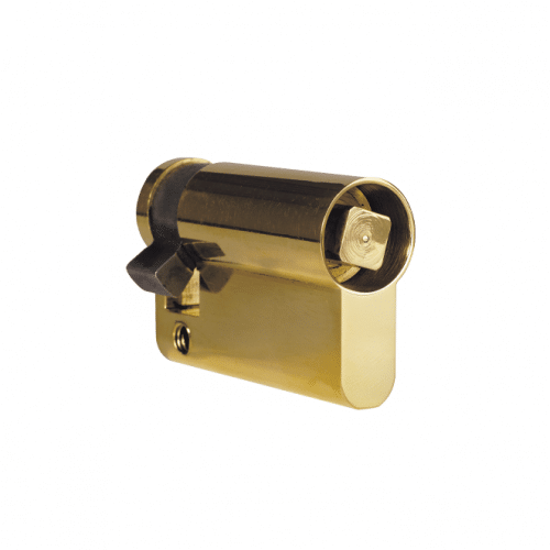 Cilindro de europerfil de Latón para diferentes figuras de llave. Con posibilidad de apertura desde el interior mediante pomo.Cilindros